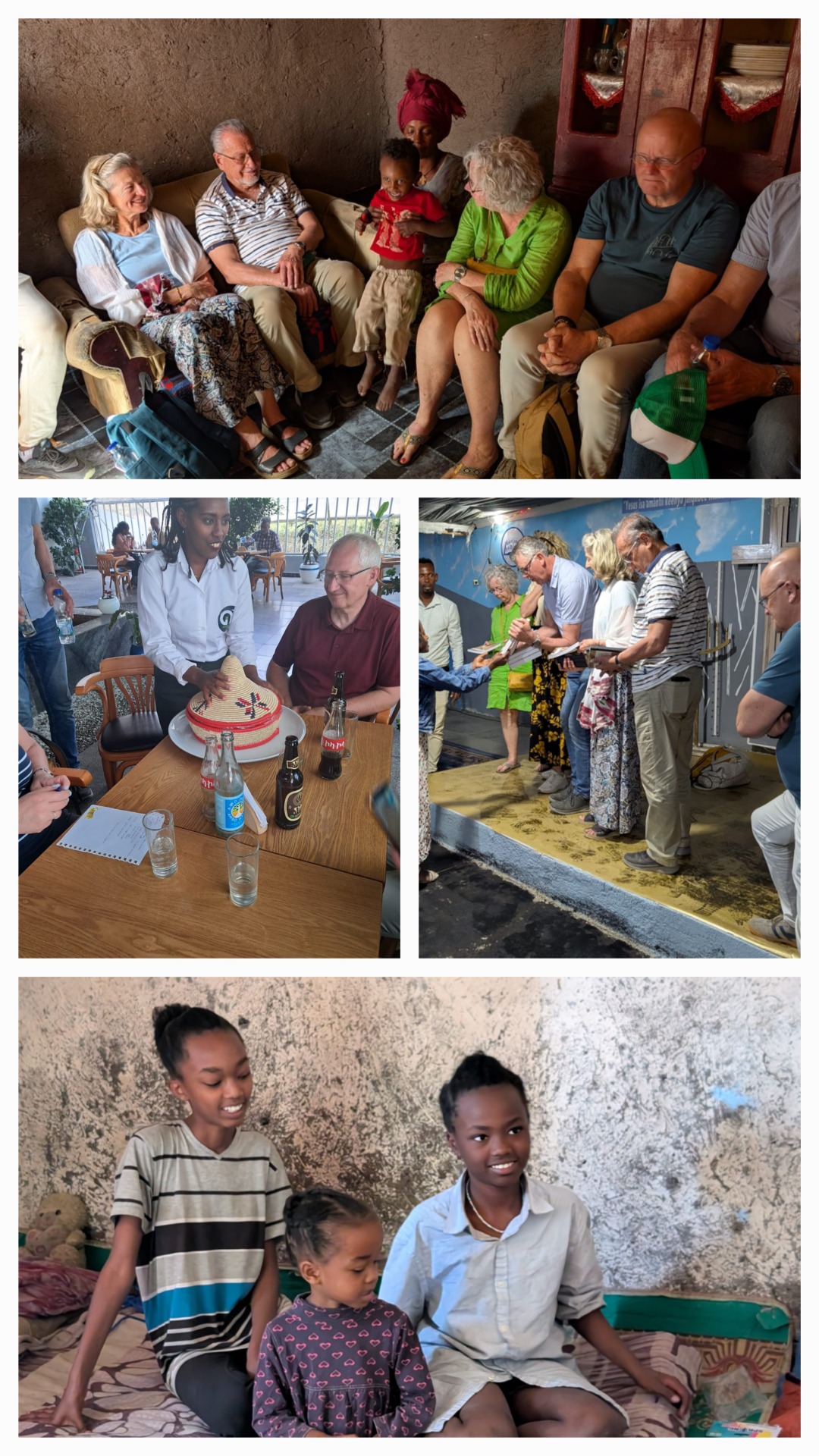 Stephan neemt ons mee voor een heerlijke lunch. Daarna bezoeken we een weduwe die met een lening nu enjerra kan bakken en verkopen. Ze heeft 5 kinderen, 2 wonen bij haar ouders. Haar man is niet overleden, maar heeft haar verlaten. Haar vorige hut moest worden afgebroken omdat de regering de weg wilde verbreden.